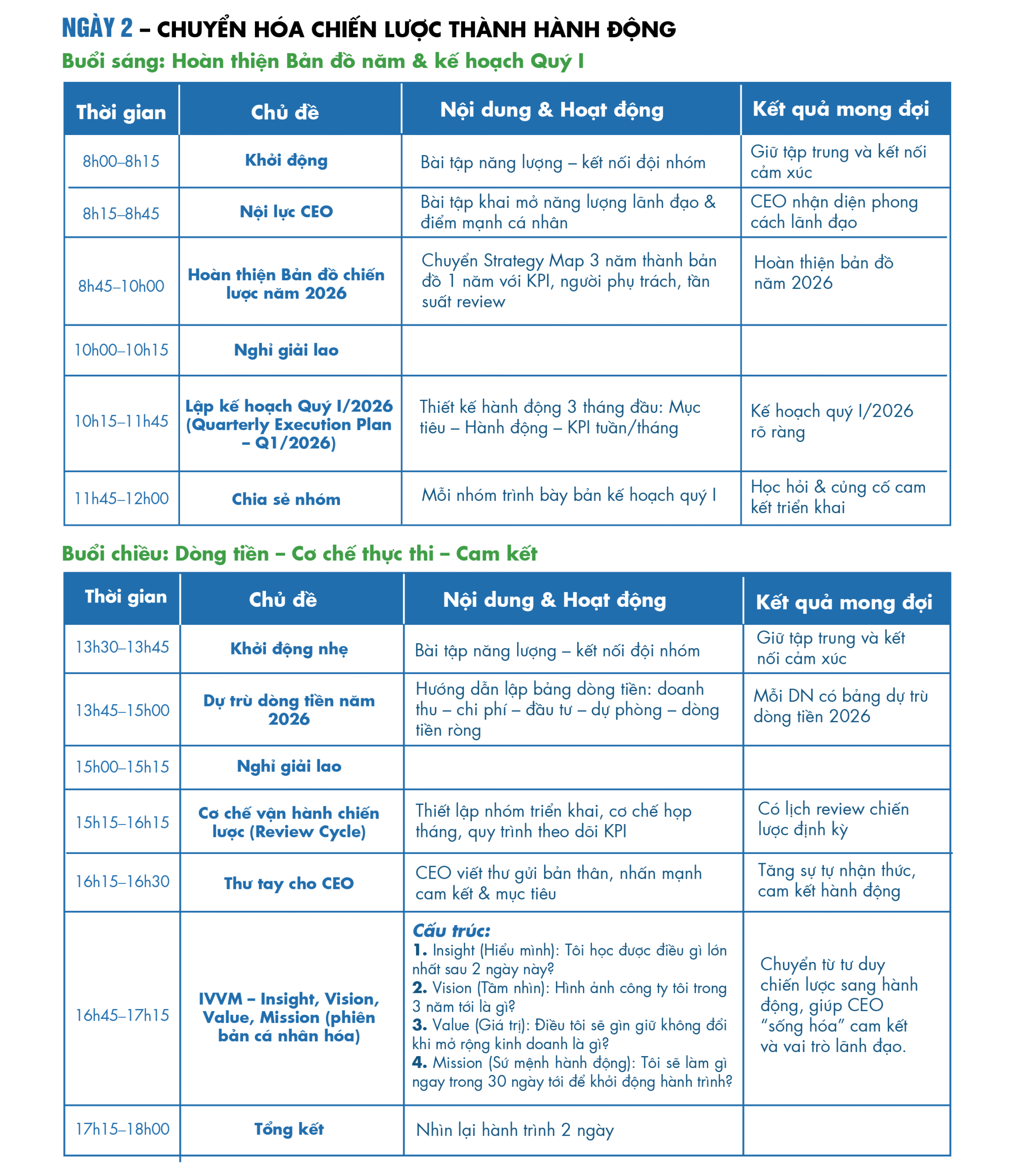 LỊCH HỌP & CƠ CHẾ VẬN HÀNH CHIẾN LƯỢC
